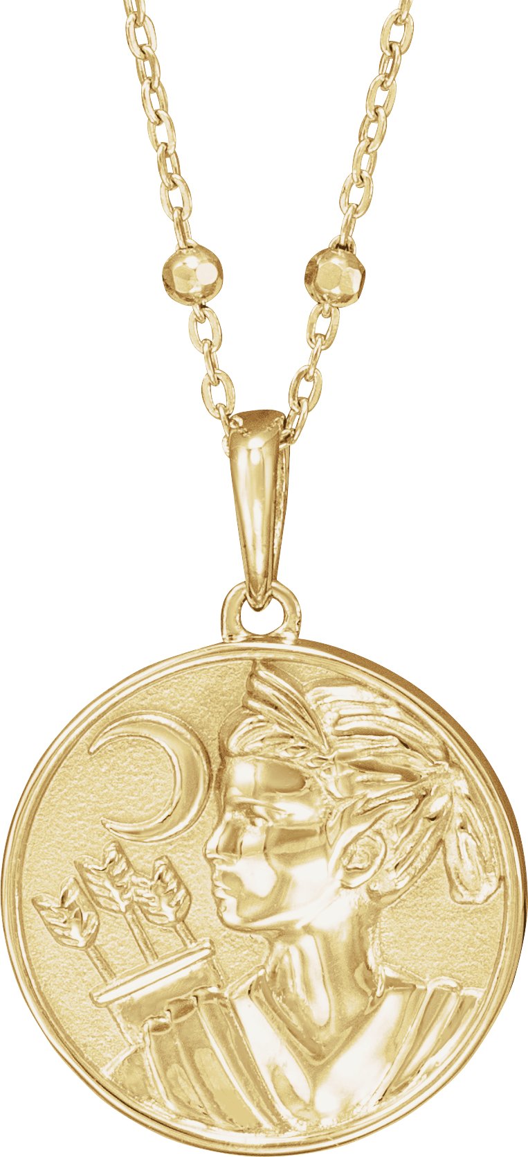 The Artemis coin necklace is characterized by its simple yet elegant design, which consists of a round coin-like medallion attached to a delicate chain. The medallion is typically made of gold or silver and features a relief image of Artemis' face, often with a crescent moon and stars surrounding her. The chain is usually made of the same material as the medallion and can be either a simple straight chain or a more elaborate curved design.